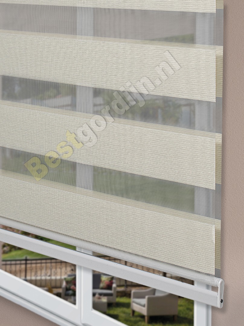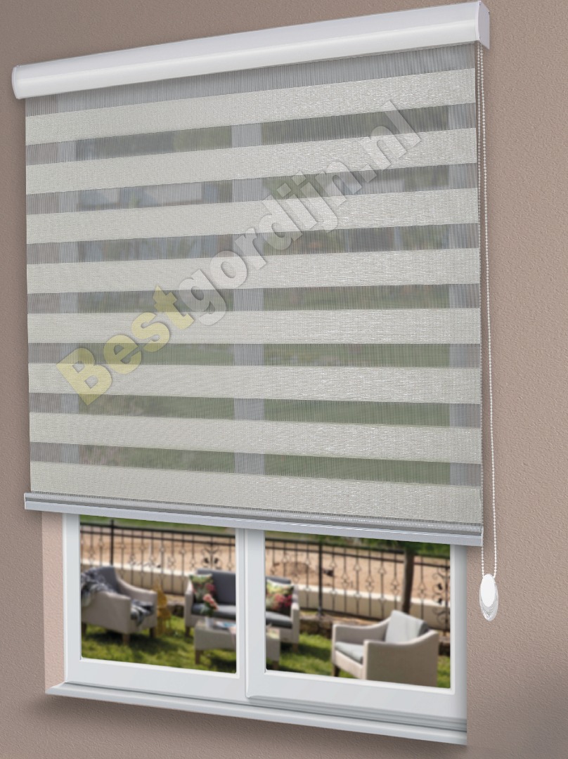 Duo rolgordijnen semi-transparante, ook wel roljaloezie genoemd, bestaat uit twee afzonderlijke lagen stof die over elkaar heen schuiven. Het gordijn is makkelijk bedienbaar met een bolletjeskoord. Dankzij de transparante en verduisterende banen profiteer je van ideale zon- en lichtregulatie en van prachtig, natuurlijk, licht in huis. En als klap op de vuurpijl kies je direct voor een smaakvolle stoffering van de ruimte.Duo rolgordijnen semi-transparante zijn in meerdere kleuren verkrijgbaar.