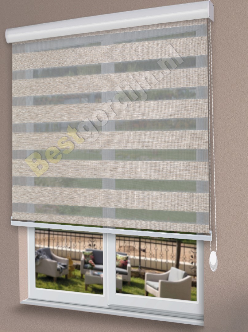 Duo rolgordijnen semi-transparante, ook wel roljaloezie genoemd, bestaat uit twee afzonderlijke lagen stof die over elkaar heen schuiven. Het gordijn is makkelijk bedienbaar met een bolletjeskoord. Dankzij de transparante en verduisterende banen profiteer je van ideale zon- en lichtregulatie en van prachtig, natuurlijk, licht in huis. En als klap op de vuurpijl kies je direct voor een smaakvolle stoffering van de ruimte.Duo rolgordijnen semi-transparante zijn in meerdere kleuren verkrijgbaar.
