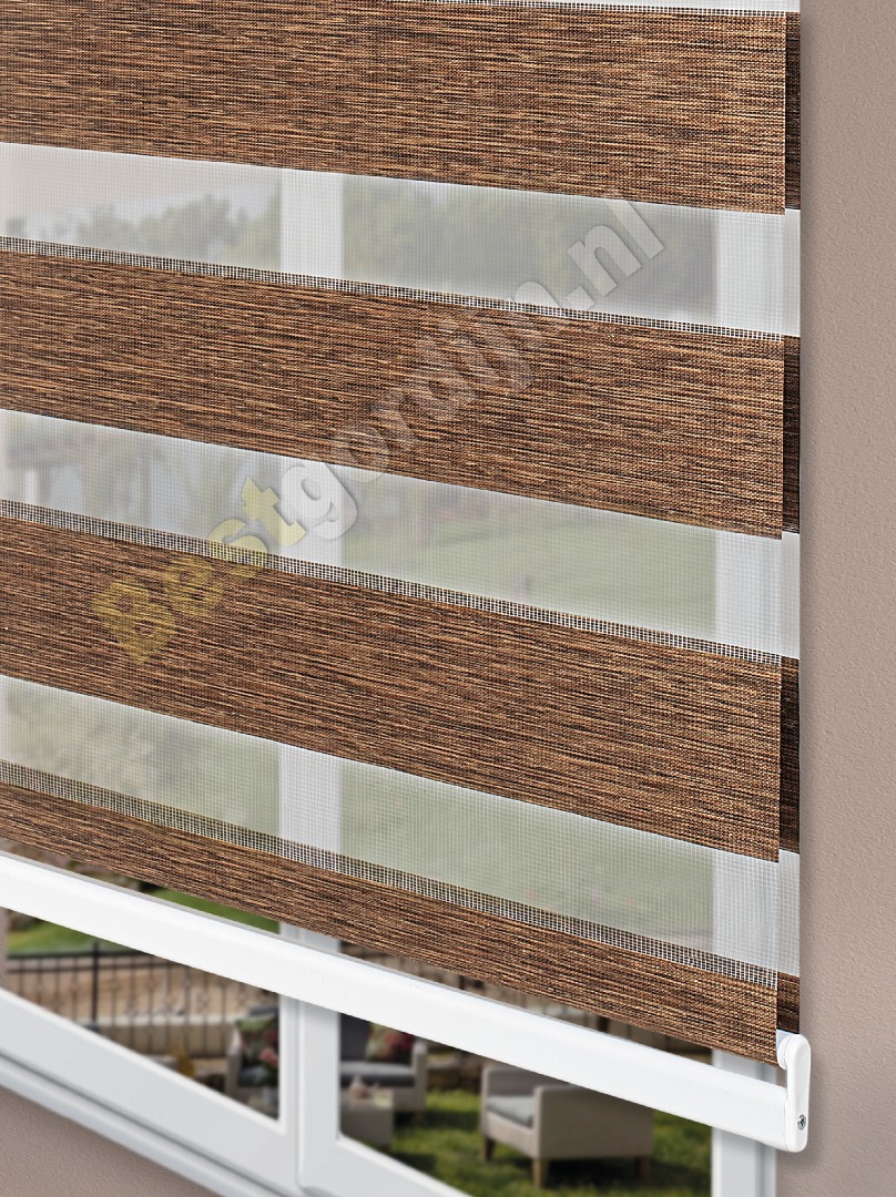 Duo rolgordijnen semi-transparante, ook wel roljaloezie genoemd, bestaat uit twee afzonderlijke lagen stof die over elkaar heen schuiven. Het gordijn is makkelijk bedienbaar met een bolletjeskoord. Dankzij de transparante en verduisterende banen profiteer je van ideale zon- en lichtregulatie en van prachtig, natuurlijk, licht in huis. En als klap op de vuurpijl kies je direct voor een smaakvolle stoffering van de ruimte.Duo rolgordijnen semi-transparante zijn in meerdere kleuren verkrijgbaar.