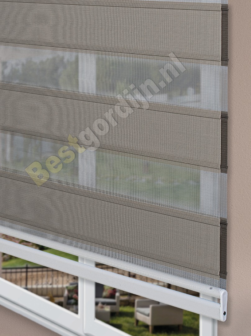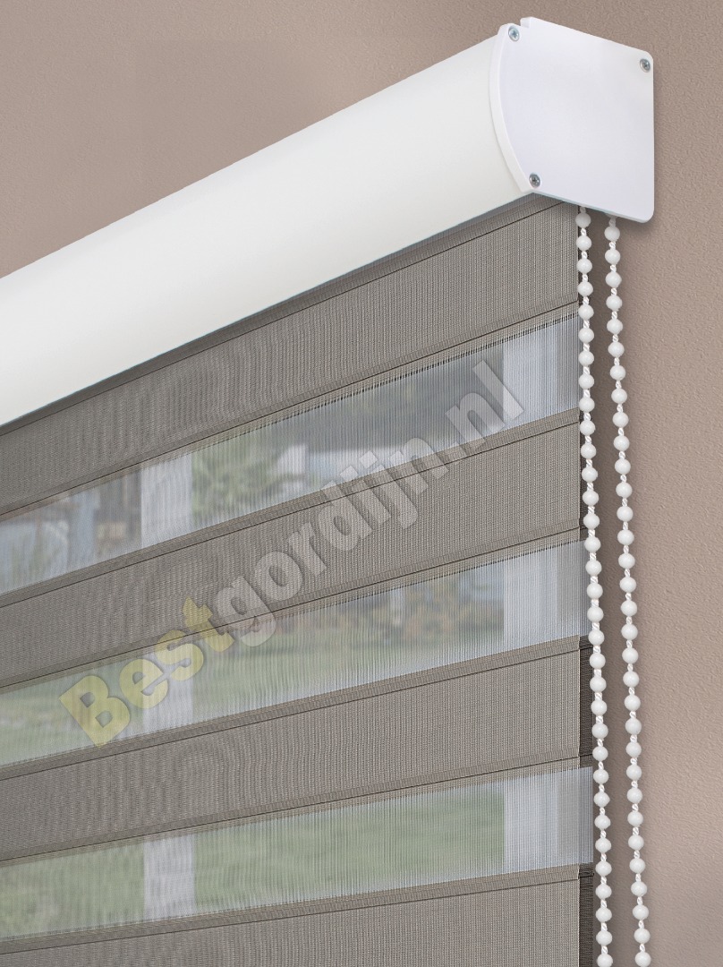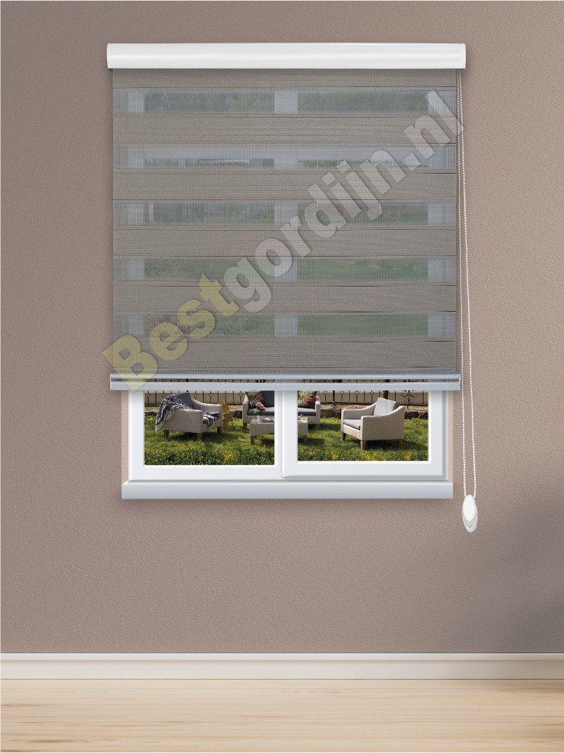 Duo rolgordijnen semi-transparante, ook wel roljaloezie genoemd, bestaat uit twee afzonderlijke lagen stof die over elkaar heen schuiven. Het gordijn is makkelijk bedienbaar met een bolletjeskoord. Dankzij de transparante en verduisterende banen profiteer je van ideale zon- en lichtregulatie en van prachtig, natuurlijk, licht in huis. En als klap op de vuurpijl kies je direct voor een smaakvolle stoffering van de ruimte.Duo rolgordijnen semi-transparante zijn in meerdere kleuren verkrijgbaar.