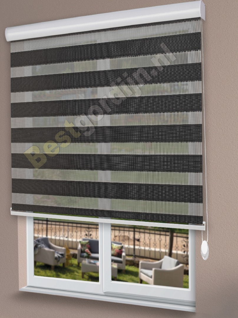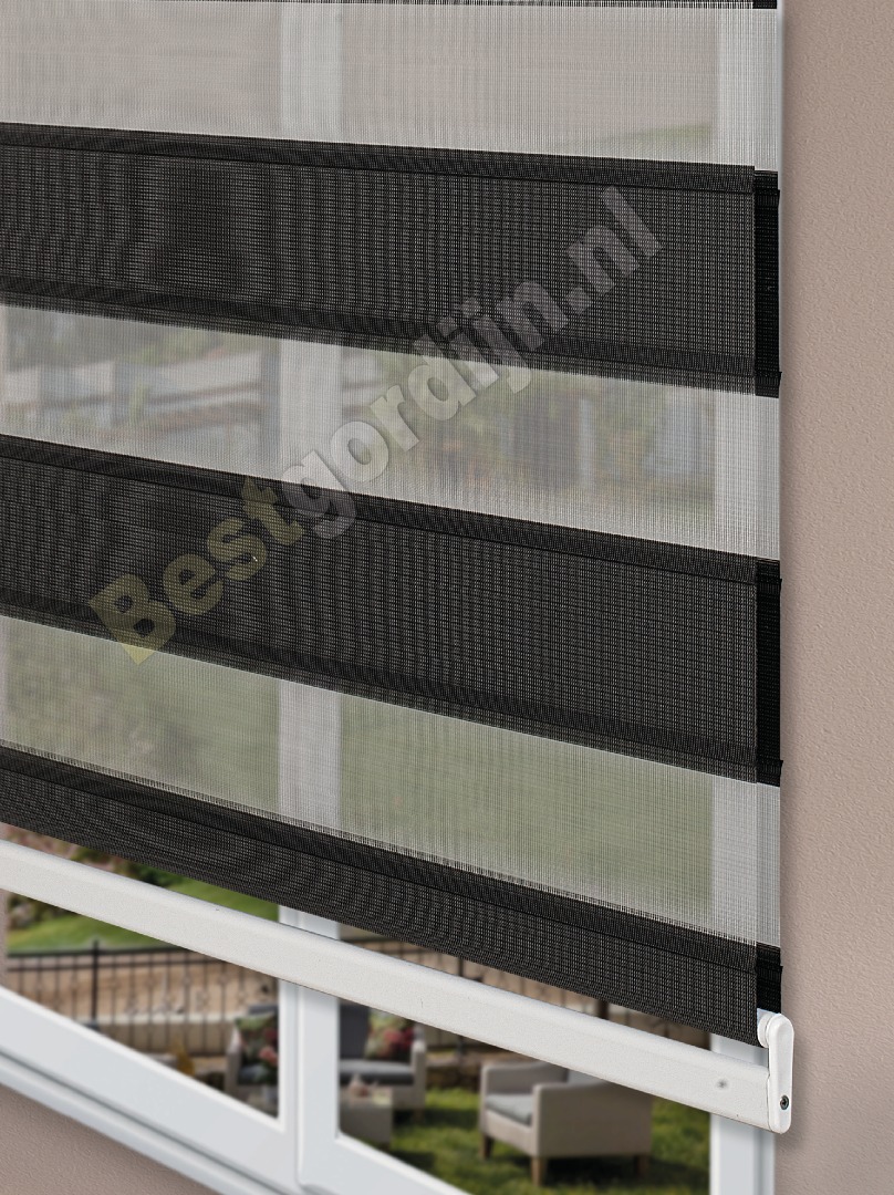 Duo rolgordijnen semi-transparante, ook wel roljaloezie genoemd, bestaat uit twee afzonderlijke lagen stof die over elkaar heen schuiven. Het gordijn is makkelijk bedienbaar met een bolletjeskoord. Dankzij de transparante en verduisterende banen profiteer je van ideale zon- en lichtregulatie en van prachtig, natuurlijk, licht in huis. En als klap op de vuurpijl kies je direct voor een smaakvolle stoffering van de ruimte.Duo rolgordijnen semi-transparante zijn in meerdere kleuren verkrijgbaar.