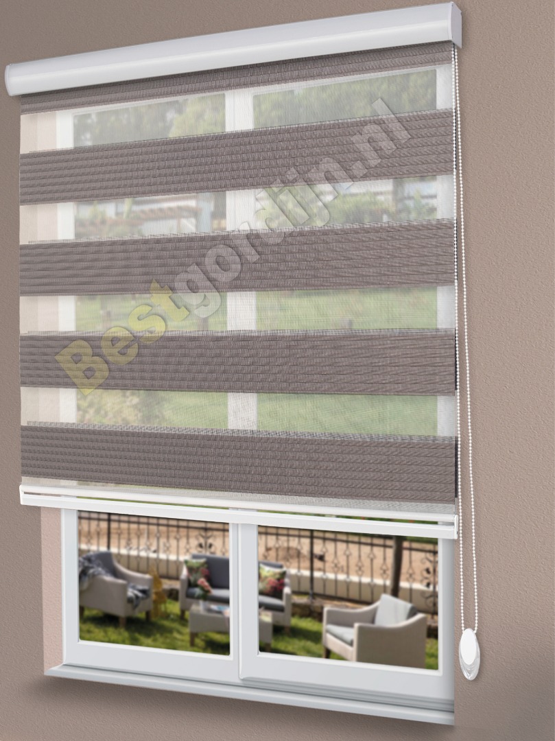 Duo rolgordijnen semi-transparante, ook wel roljaloezie genoemd, bestaat uit twee afzonderlijke lagen stof die over elkaar heen schuiven. Het gordijn is makkelijk bedienbaar met een bolletjeskoord. Dankzij de transparante en verduisterende banen profiteer je van ideale zon- en lichtregulatie en van prachtig, natuurlijk, licht in huis. En als klap op de vuurpijl kies je direct voor een smaakvolle stoffering van de ruimte.Duo rolgordijnen semi-transparante zijn in meerdere kleuren verkrijgbaar.