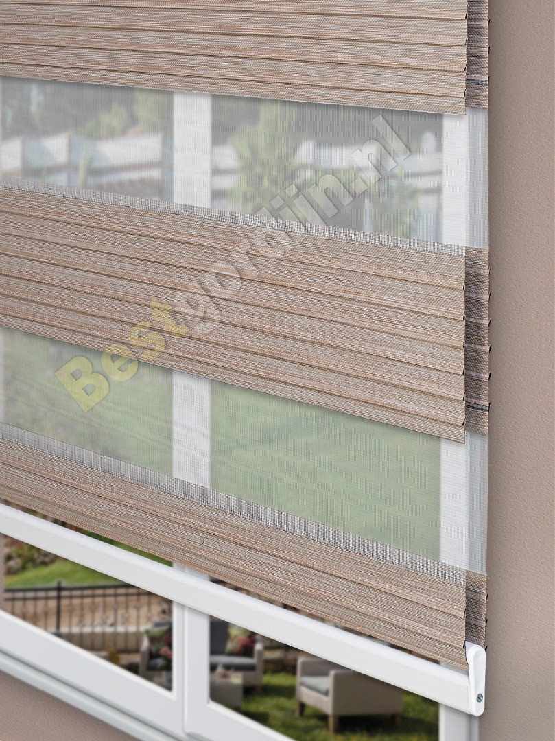 Duo rol gordijnen verduisterend, ook wel roljaloezie genoemd, bestaat uit twee afzonderlijke lagen stof die over elkaar heen schuiven. Het gordijn is makkelijk bedienbaar met een bolletjeskoord. Dankzij de transparante en verduisterende banen profiteer je van ideale zon- en lichtregulatie en van prachtig, natuurlijk, licht in huis. En als klap op de vuurpijl kies je direct voor een smaakvolle stoffering van de ruimte. Onze Duo rol gordijnen verduisterend zijn in meerdere kleuren verkrijgbaar.
