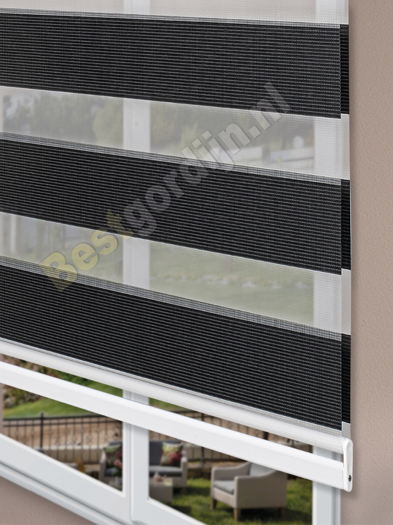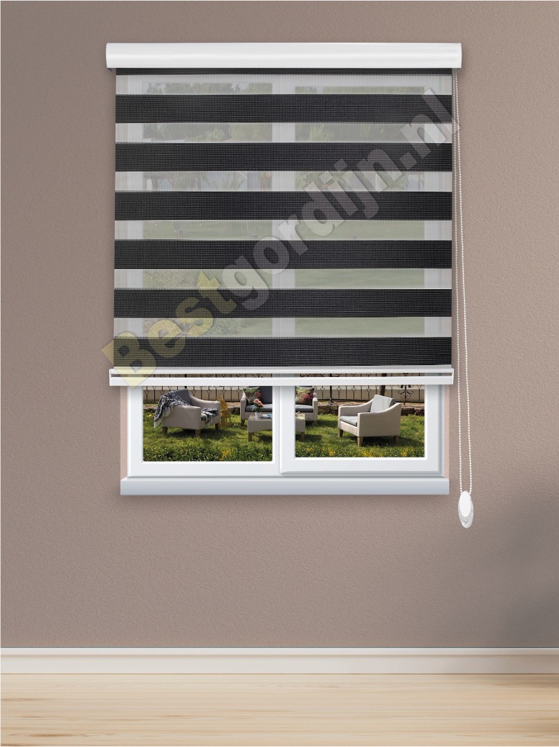 Duo rol gordijnen verduisterend, ook wel roljaloezie genoemd, bestaat uit twee afzonderlijke lagen stof die over elkaar heen schuiven. Het gordijn is makkelijk bedienbaar met een bolletjeskoord. Dankzij de transparante en verduisterende banen profiteer je van ideale zon- en lichtregulatie en van prachtig, natuurlijk, licht in huis. En als klap op de vuurpijl kies je direct voor een smaakvolle stoffering van de ruimte. Onze Duo rol gordijnen verduisterend zijn in meerdere kleuren verkrijgbaar.